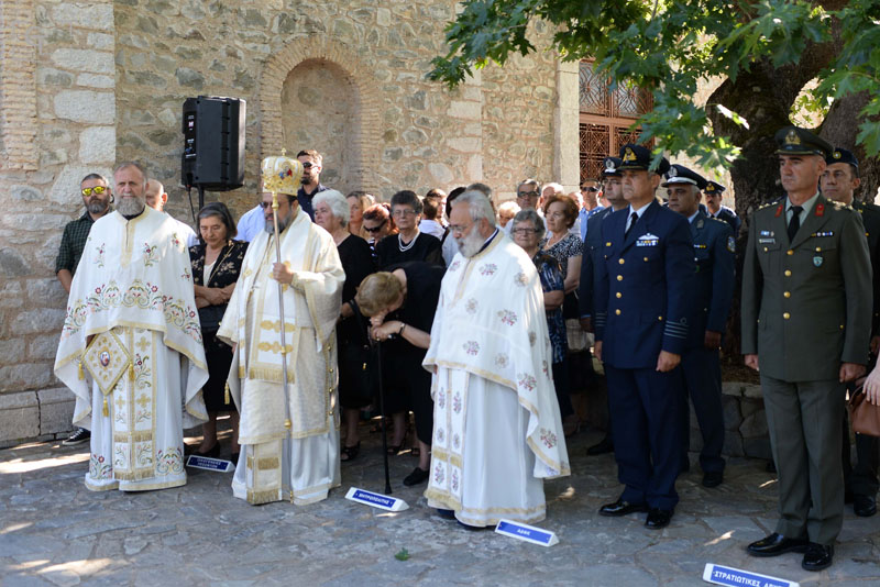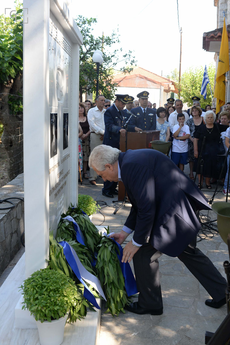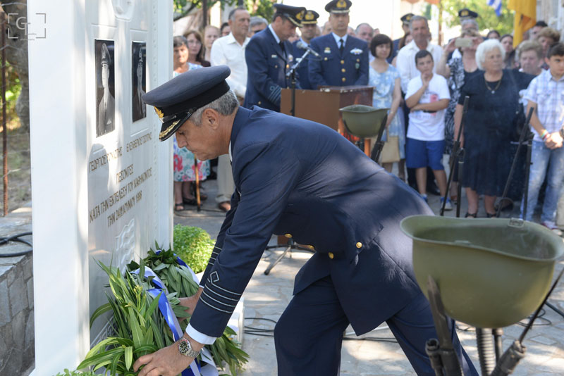 Έπειτα τελέστηκε επιμνημόσυνη δέηση και στη συνέχεια σε κλίμα συγκίνησης έγιναν τα αποκαλυπτήρια του μνημείου των πεσόντων από το μητροπολίτη Χρυσόστομο και το διοικητή της 120 ΠΕΑ σμήναρχο Κωνσταντίνο Χίνη. Ακολούθως έγινε προσκλητήριο πεσόντων και εκφωνήθηκε ομιλία από εκπρόσωπο της 120 ΠΕΑ και κατάθεση στεφάνων, ενώ τιμές απέδωσαν άγημα της Αεροπορίας και η Στρατιωτική Μουσική της ΔΙΚΕ Τρίπολης.